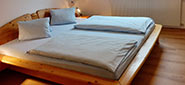 - 1 separater Schlafraum mit Doppelbett (Vollholz) ohne Fußteil