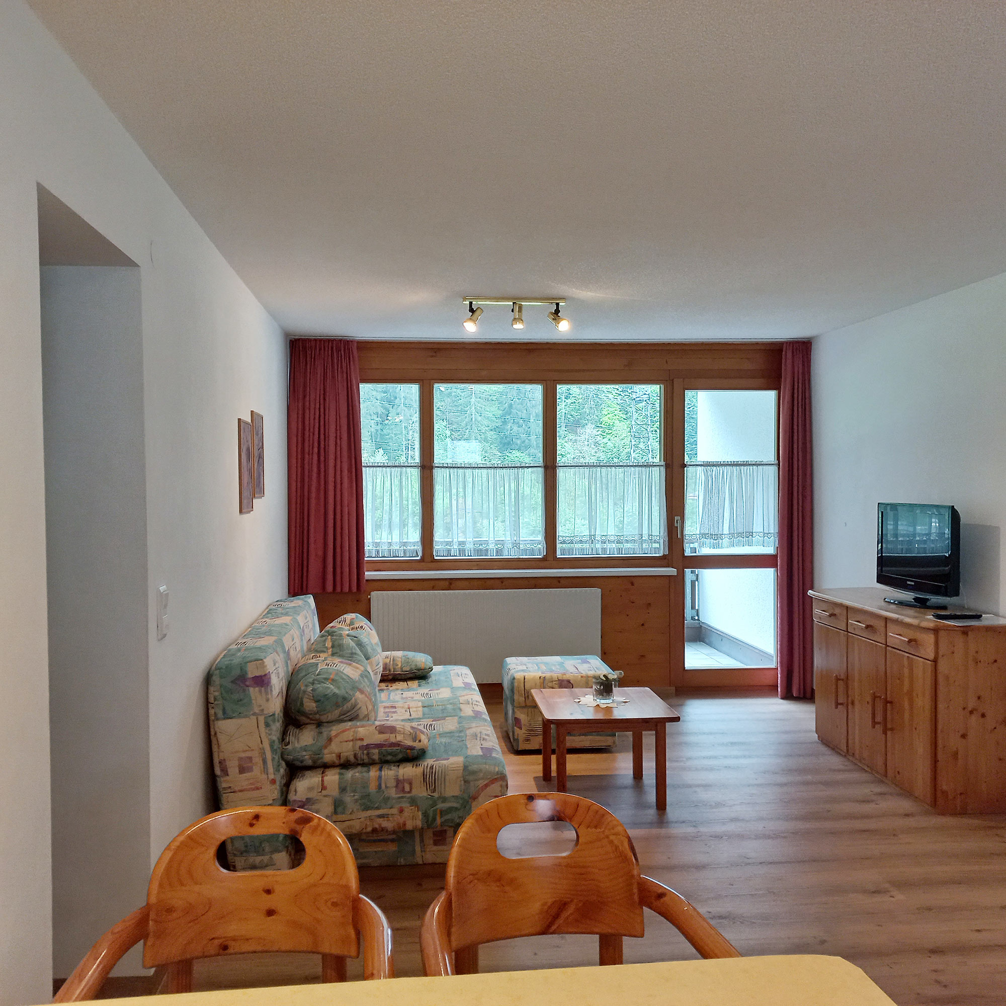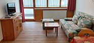 - 1 Wohn-Schlafraum mit ausziehbarer Bett-Doppelcouch (Federkernmatratze)