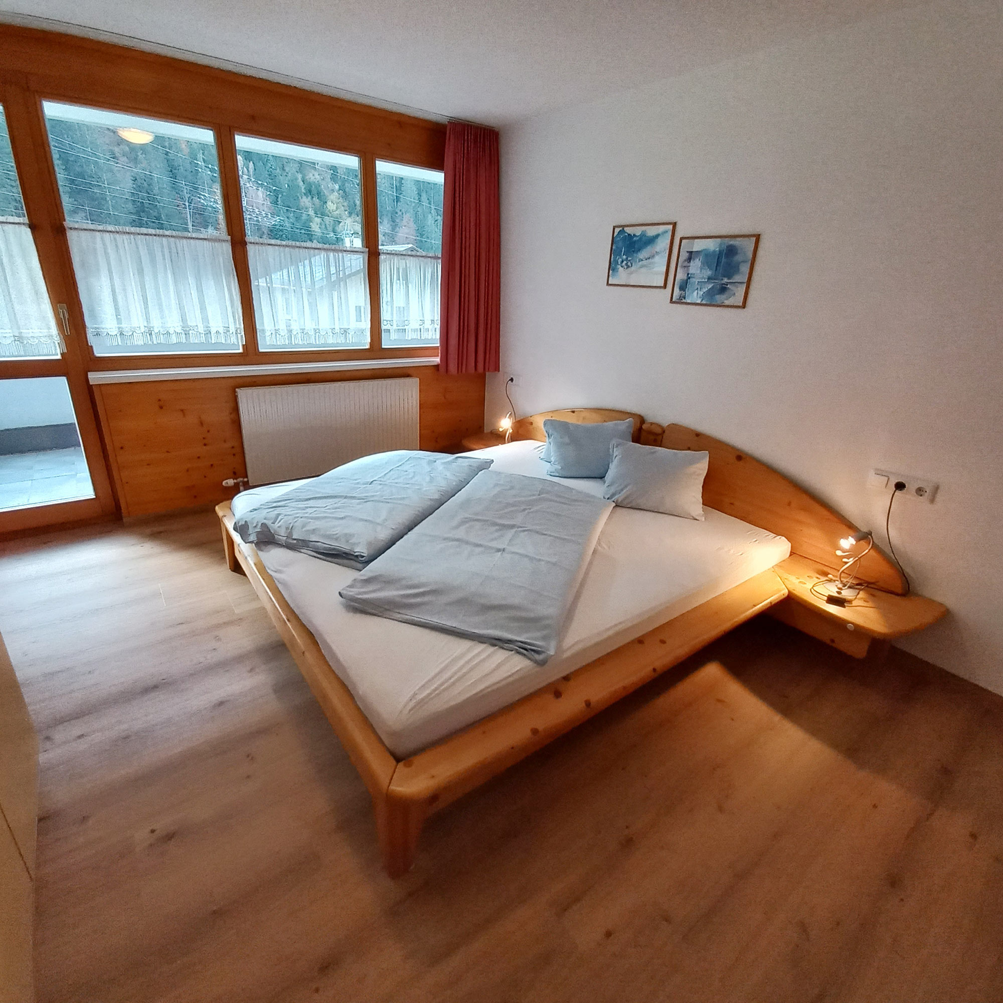 - 1 separater Schlafraum mit Doppelbett (Vollholz) ohne Fußteil